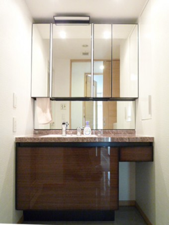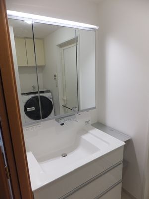 陶器の洗面ボウルにヒビが入ったので、最新の洗面化粧台に交換を検討。 既存の洗面は幅が750mmなのでもっと収納量をUPするため幅900mmにしました。
