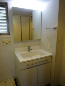 賃貸マンションをご所有のS様。洗面化粧台とトイレをキレイにしたいとリフォームをご検討されていました。 今回は洗面化粧台本体のお取替えをさせて頂きました。