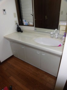 洗面化粧台の交換をご検討されていたU様。鏡はキレイでしたので、下のキャビネット部分のみ交換しました。工事も1日で終了します。