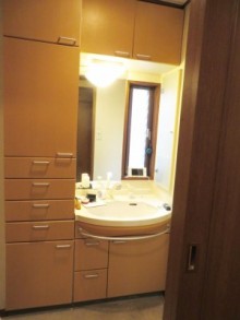 洗面台の一部が破損した為、洗面化粧台の交換工事のご依頼を頂きました。