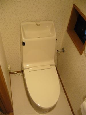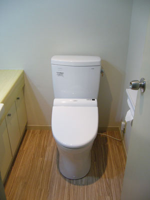 古くなったトイレを交換するのに、せっかくなのでイメージを変えた デザインすっきりなキャビネット付の便器に交換しました。