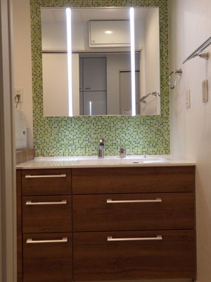 浴室・洗面室を最新の設備機器にしたいとリフォームをご検討されていました。・商品はTOTOのWG(ユニットバス)・スクエア(洗面化粧台)を設置したい。・壁をエコカラット貼り床を塩ビフロアにしたい。・収納計画などを計画したい。 とのご要望でした。